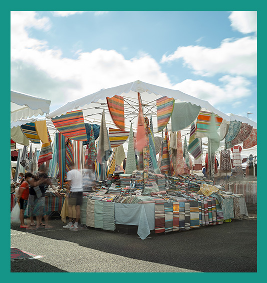 Le marché traditionnel dans le centre-ville d’Hossegor : une offre riche et variée. De 9h à 13h30.